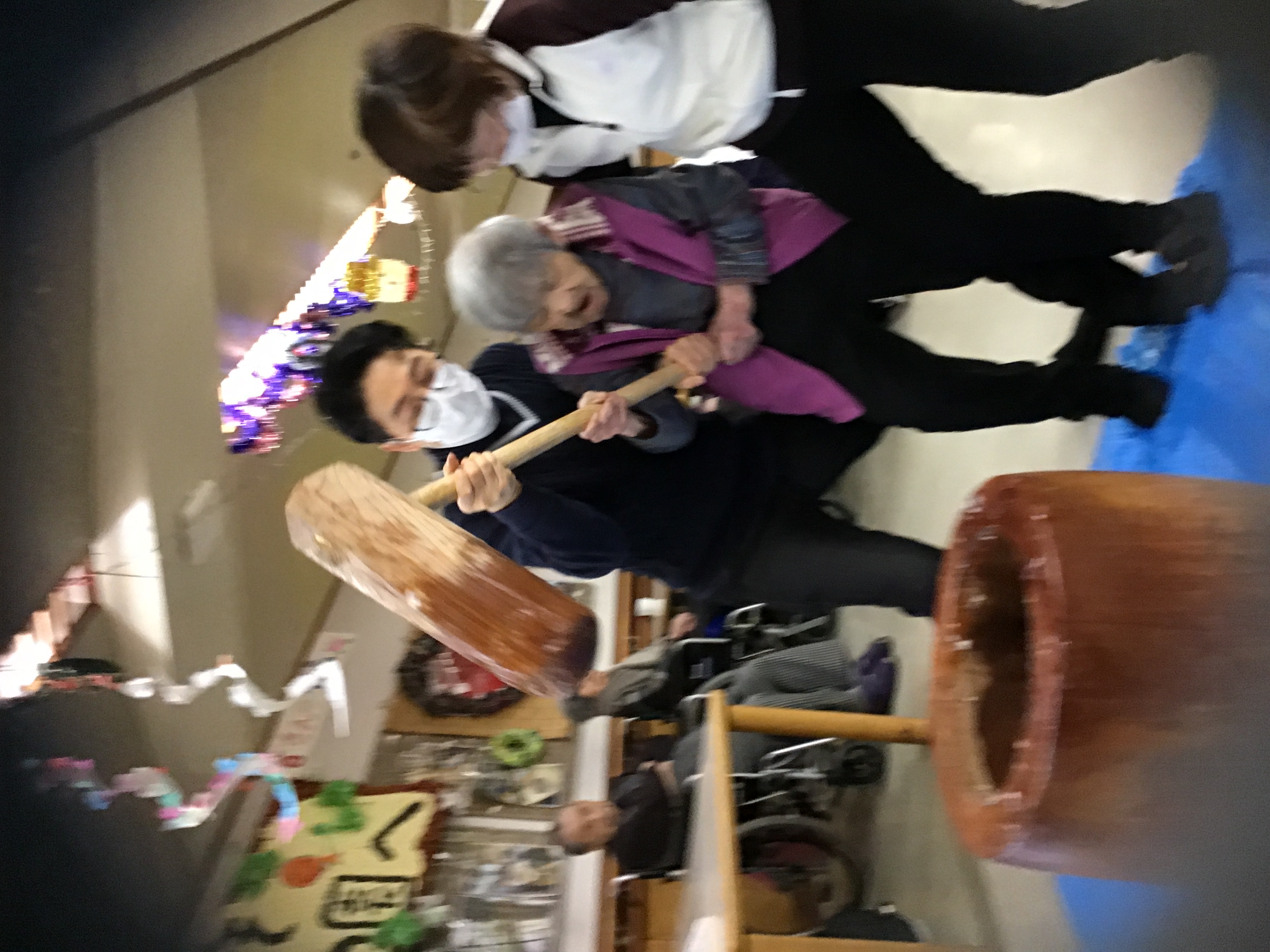 R7.12月 もちつき大会。皆様の掛け声に、利用者様にもついていたたぎました。
